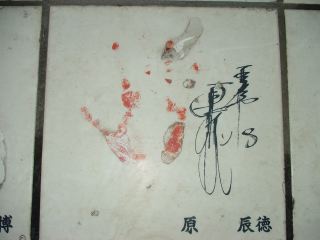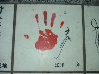江川 卓氏の手形とサインです。