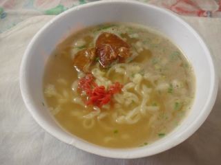 お湯を入れて豚角煮と紅ショウガを入れて完成です。