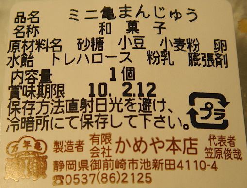 品名「ミニ亀まんじゅう」としっかりと書いてあります。