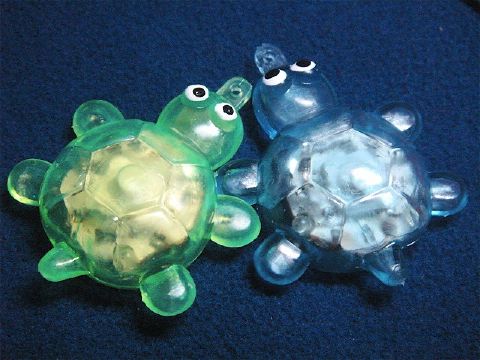 二匹の亀を水の入ったビニール袋に入れてみました。