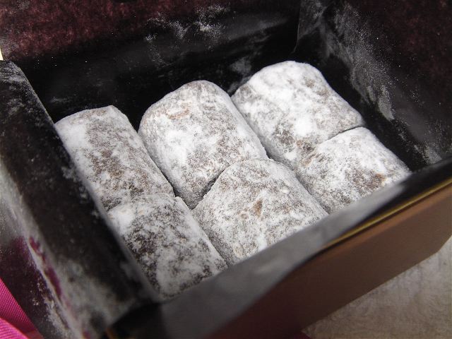 白いお化粧をした円柱状のチョコレートが入っていました。