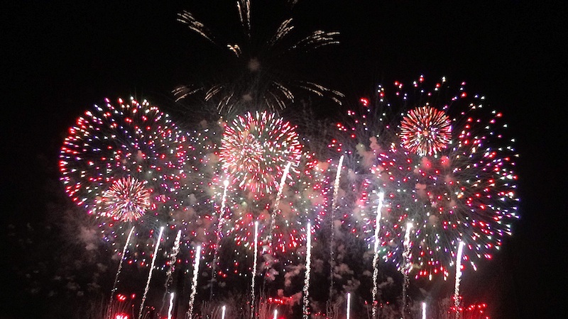 「風が吹いている」のメロディーに乗せて花火が打ち上がります。