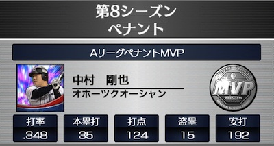 ペナントMVPは、首位打者とホームラン王の2冠に輝いた我がチームの中村剛也選手が獲得しました。優勝した春日部の選手ではありませんでした。