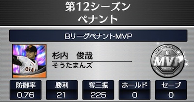 ペナントMVPは優勝した我がオホーツクオーシャンの三冠王の阿部慎之助ではなく、2位のそうたまんズから最優秀防御率と最多勝を獲得した杉内俊哉投手が選ばれました。防御率0.76、21勝は立派ですが、優勝チームの4番で三冠王を獲得した阿部が選ばれなかったのは不思議です。