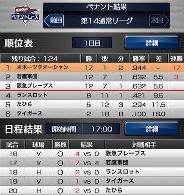 さて次は第14通常リーグです。優勝したのでプレミアリーグに残留できるかと思っていたのですが、通常リーグに降格のようです。何か不祥事でも起こしたのでしょうか(笑)。