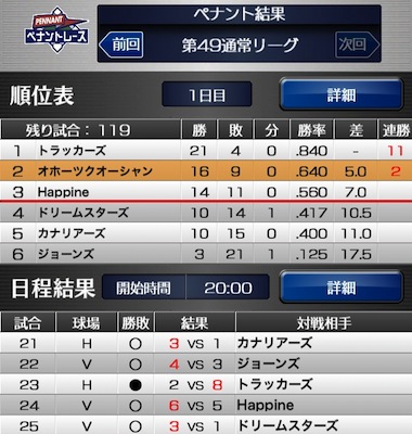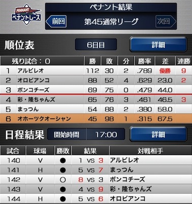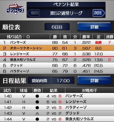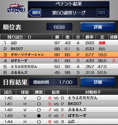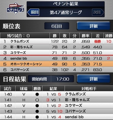 ペナント結果