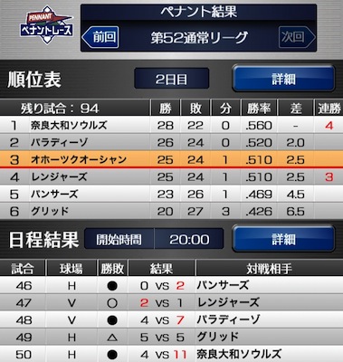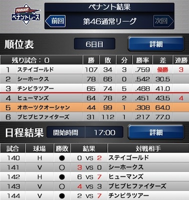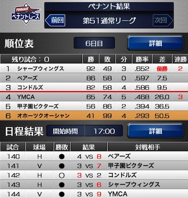 もう飽きてきましたが、自動的にペナントレースは進むので、結果の確認だけです。楽しみよりも義務・苦痛になってきました(笑)。