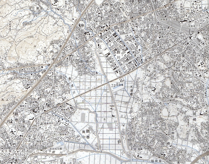 ちなみにこれがほぼ同じ場所の現在の2万5千分の1の地形図です。