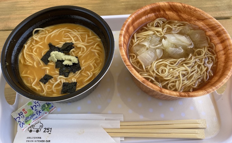 淡路島最南端のうずまちテラスのキッチンカーで淡路島たまねぎラーメンと淡路島うにラーメンをいただきました。