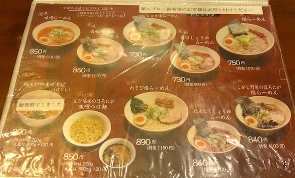 名古屋では老舗の有名店という認識だったがなかなか行くチャンスがなかった。荒畑駅を下車し、道幅のとても広い御器所通を西へ向かう。商店や飲食店の少ない場所にひっそりと佇んでいた。早速しょうゆラーメンを注文する。醤油や塩や味噌のラーメンだけでなく、創作ラーメンのお店としても有名らしくいろいろな種類のラーメンがある。ん? 老舗で創作ラーメン???。