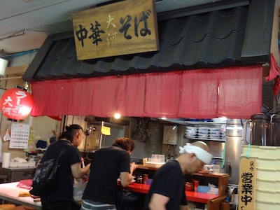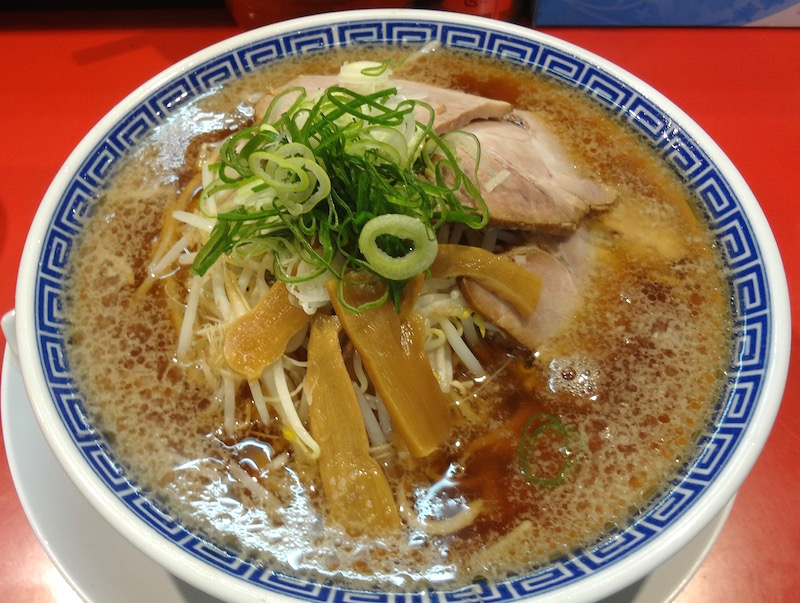 朝から活気のある柳橋市場にあるラーメン屋さん。マルナカ食品センターというビルの中にある。名古屋の有名店「如水」のグループのお店だが味は違うらしい。メニューは男らしく(?)ラーメンのみ。味玉+100、肉増し+150、全部のせ+200のトッピングがあり、大盛+100、めし100、もやし増し無料などもある。立席で3人が座れるだけのカウンターがあるが、すでに満席。しばらく待って空いてからラーメンを注文した。