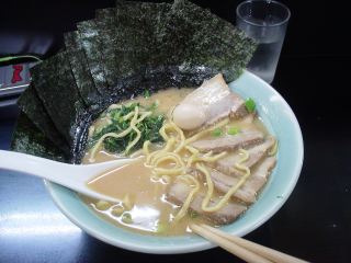 出てきたラーメンは、ウズラの卵とほうれん草と海苔が入っている。スープは標準的な家系であったが、残念なのはスープの温度。おそらく冷たいチャーシューの影響で温度が下がっているのだ。店舗の清潔感も今一つだ。(2008/10/27)