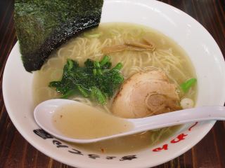 店に入ると券売機が2台ある。左側は“ぎょうてんラーメン”用で、右側は“和風ラーメン”用である。純和風塩ラーメンを麺硬めで注文。麺は、細縮れ麺。硬めよりももう少し茹でた方が美味しいかもしれない。スープはやや濁った塩ダレ。旨みが過多気味。具は、チャーシュー・ほうれん草・メンマ・ネギ。(2004/12/23)