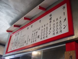 [コメント]“支那そばすどう”の跡にリニューアルオープンしたお店。変わった店名とレトロっぽい外観に目が行く。店内は八分の入りでかなりの盛況である。メニューは、ラーメン(小)500・(並)(大)600、味噌ラーメン(小)500・(並)(大)600、そば焼き(小)400・(並)(大)500、餃子300など。ラーメン(並)を注文。