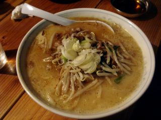 特筆すべきは、麺の美味しさ。細いストレート麺で非常になめらかである。新横浜ラーメン博物館の支那そばやの麺にも匹敵する美味しさだ。喉ごしが最高で麺だけでも十分に美味しい。店の角に製麺機がおいてあったので、そこで製麺をしているのだろう。みそラーメンの麺とは違うようだ。(2006.11.12)