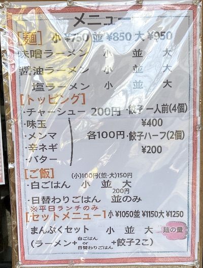 メニュー ◇ みそラーメン(並)