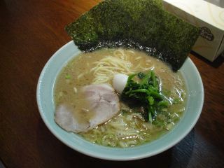 出てきたラーメンは家系らしく豚骨醤油のやや臭みのあるもの。麺は太麺でモチモチした感じ。具は、チャーシュー・のり(3)・ほうれん草・ウズラゆで玉子・ネギ。(2005.10.06)