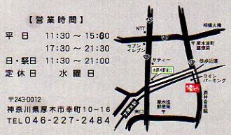 [アクセス]本厚木駅から線路の北側を東へ約600m。線路の南側に店が見える。麺や食堂の斜向かい。駅から徒歩10分ほど。
