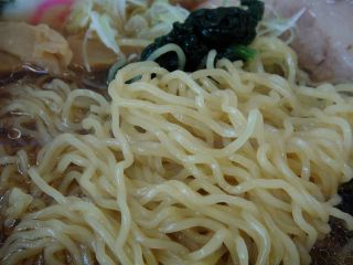 出てきた中華そばは、スープは表面に油が浮いていて、熱々でなかなか冷めない。ダシが鶏ガラ+魚介系かと思われるが、あっさりしていて、油の甘味が残る。麺は細縮れでスープとの絡みがよい。具は、チャーシュー(バラロール)・なると・メンマ・ほうれん草・ネギ。チャーシューは厚めでボリュームがあります。全体的に本当に昔懐かしい中華そばという感じがします。平塚の幻の店「ふるた」の味を継承しているというのがウリですが、麺や油は同じような感じですね。チャーシューは明らかに異なりますが・・・(2008/4/29)