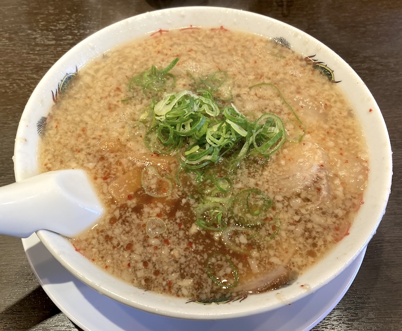 全国に展開している来来亭。愛甲石田店に行ってみた。中途半端な時間だったのでお客さんは少ない。基本メニューと思われるラーメンを麺柔らかめで注文。すぐに到着したラーメンは鶏ガラ中心のスープに背脂と唐辛子が加わっている。細麺は柔らかめよりも硬めの方が良かったかも。チャーシューはメニューの写真ほど乗ってないような感じ。ネギラーメンが有名のような印象があったが、値上がりと流通の関係で毎日は提供できなくなっているようだ。(2024/10)