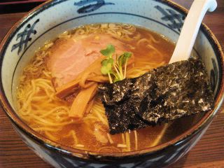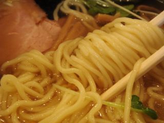 出てきたラーメンは魚系の香りが漂っている。スープは魚系(九十九里の煮干し・カツオ節・サバ節・昆布)と動物系(豚骨・鶏ガラ・香味野菜など)のWスープとのこと。無化調(化学調味料未使用)である。店主の実家は老舗の日本そば屋なので全体的に和風の感じがするのかも知れない。麺は、細ストレート。具は、チャーシュー・メンマ・かいわれ大根・のり・ネギ。和風のラーメンの中でもかなり美味しい部類に入る。食べ終えようとすると、ほのかに柚子の香りがしてくる。(2007/11/23)