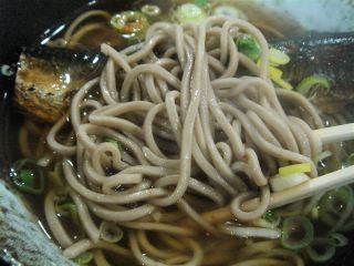 今庄そばでにしんそばである。雪吹雪の日にはこのような駅そばで暖まるのがいい。北陸地方の駅そばは、福井が「今庄そば」、石川が「白山そば」、富山が「立山そば」(高岡はなぜか今庄そば)に分かれているらしい。かえしは醤油色をしている。こちらはまだ透明感の高いものではないのかな。やや太めで柔らかめのそばに、甘辛く煮てあるにしんと汁がピッタリと合い、おいしい駅そばとなっている。(2008/2/17)