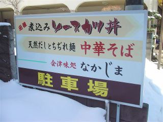 仙台から乗車した高速バスは会津若松インターチェンジを降りて、会津アピオ入口で停車した後、12時13分に会津若松駅到着。私は市内中心部である次の神明通りで降りる。時刻は12時22分。ほぼ定刻通りである。中合というデパートでトイレを借り、なかじまグリルへ向かう。主要道の歩道は雪が取り除いてあるが、横道にそれると路面に雪が残り一部凍結していて歩くのに苦労する。いつもの半分くらいのスピードでゆっくりと歩いて約5分。なかじまグリルへ到着した。