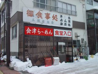 会津田島駅で途中下車。日陰はかなり寒い。雪に被われた歩道をゆっくり歩き旧南会津郡役所の建物を見学した後、偶然見つけたこの店に入る。まさに駅前食堂といったロケーション。素朴な感じに心が踊る。町の食堂兼飲み屋といった趣で、もつ煮込みなどのつまみはアルコールもメニューもある。テレビでは東京国際マラソンの実況中継が誰が見ているわけでもなく流れている。「もつ煮込みとビール」といきたかったが自重してラーメンを注文。