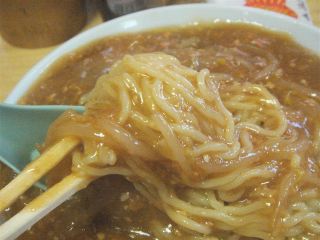 そんなことより驚いたのは「味噌ラーメン」なんです。確かに、注文したときに「味噌ラーメンは餡かけですがよろしいですか?」と言われましたが、それほど気にとめていませんでした。表面全体を餡が覆ったものとは思いもしなかったからです。今まで全国各地でラーメンを食べてきましたが、こんなスタイルのラーメンは初めてです。餡の中にはもやしや挽肉などが入っており、味噌の味はそれほど強くありません。そしてニンニクがかなり利いています。M氏ならフック度高しと評価することでしょう。