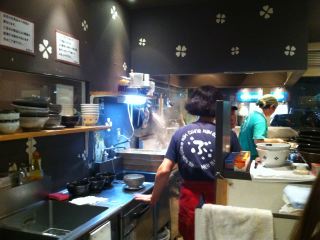 岐阜県多治見市の有名店であるぶっこ麺らーめんに行きました。行列前提らしく、店内に長椅子がおいてあります。店内は綺麗ですが、段ボールなどが無造作におかれているのが気になりました。メニューは、つけ麺800、辛つけ麺850、釜揚げつけ麺850円(各中盛+50、大盛+100、小盛-30)、魚ダシらーめん(中太麺)730、みそぶた丼350など。つけ麺の評判がいいらしい。つけ麺の麺は温盛りにしたからか、コシが足りないような感じがしました。つけ汁には、チャーシュー・メンマ・のり・ほうれん草・ネギです。店内の壁紙にも四つ葉が描かれており丼と同じ柄でした。店員さんは親切でした。(2011/09)