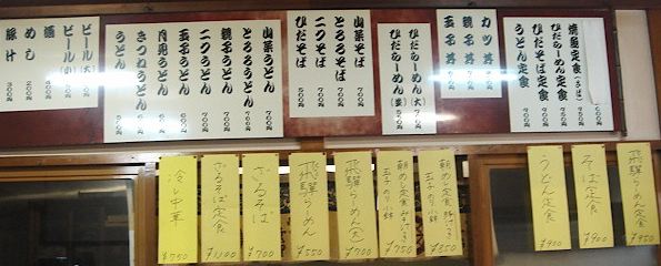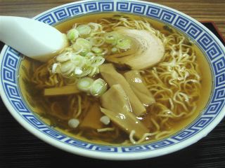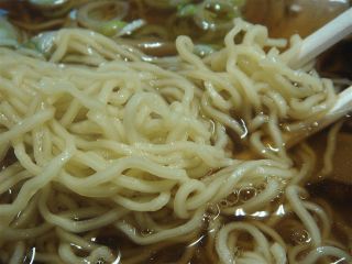 出てきた中華そばはスープは見た目はやさしい醤油色で、飲んで見るとあっさりした和風である。麺は細縮れ麺で喉ごしはよい。具は、チャーシュー・メンマ・ネギ。(2008/8/23)