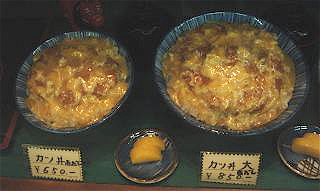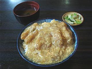 『卵がまだ貴重だった創業時に、少ない卵でいかにボリュームを持たせようかと考え出されたのが、このあんかけカツ丼。深い味のダシは、カツオなど5種類から取り、豊かなコクを出す。くず粉でとろみをつけたあんは甘さが加えられ、昔ながらの素朴な味になっている。縁起をかつぐためにこのカツ丼を食べに来る学生も多いそう。大盛は2倍のボリュームがある。』