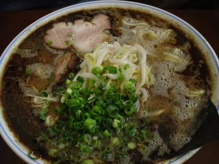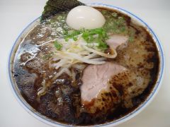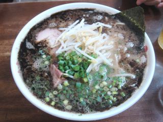 コメント:長男と二人でなんつッ亭へ。車で約30分かかる。ラーメン二つと餃子一つを注文。出てきたラーメンはマー油の黒みが美しい熊本ラーメン。相変わらずコクがあるスープが旨い。具は、チャーシュー・ネギ・もやしで、メンマはない。麺を完食した後に、めしをスープに入れて食す。これも旨い。店が空いていたために、食後に店主と会話することに成功。なかなか楽しいひとときであった。