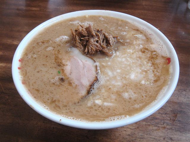 コメント:家族で行く。国道246号線が渋滞していて、店に着くまで1時間。店外までの行列のために待ち時間約30分。ふー。大人気である。店内には紹介された雑誌などのコピーが貼られている。TVチャンピオンで使用した某氏のゼッケンも貼ってあった。厨房内には店主夫妻をはじめ4人が忙しそうに仕事していた。チャーシューメンを食す。相変わらず美味しい。至福のひとときを過ごすことができた。「並んでも美味しいラーメンが食べられてよかった」とは次男の言葉。