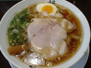 スープは透明な醤油色。あっさりしている。麺は、中やや縮れ麺で食べている間にどんどん柔らかくなる。具は、チャーシュー・メンマ・もやし・茹で玉子(1/2)・ネギ。