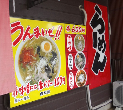 2年前くらいに、この無法松で「大山ラーメン」ができたということを知ったが、やっと食べに来ることができた。メニューは、赤味噌ラーメン、黒らーめん、うまかららーめん、大山ラーメン、つけ麺など。もちろん大山ラーメンを注文。