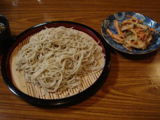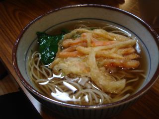 さて最初の注文は、天ぷらそば(温)4、天ぷらそば(冷)1だった。素朴な感じのそばで、サラッと平らげた。次いでとろろそばを注文した。とろろとわかめをたっぷり乗せて、温泉玉子を入れる。これもまたサラッと平らげた。全員2品目注文した。最年長の母も天ぷらそばの後、そばがきをたのんでいた。うどんは食べられなかったが、なかなかコストパフォーマンスのよいお店だった。(2007.4.8)