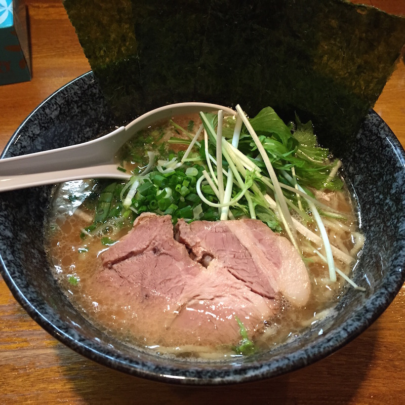 風の強い日に電車でいく。シンプルな豚骨ラーメン。(2015/12)