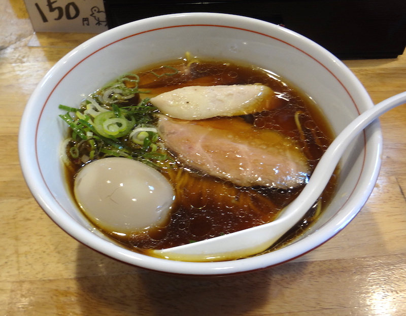 醤油らーめんにしようかと思ったが、味玉らーめんを注文。中ストレート麺は柔らかめで、チャーシューは鶏と豚の二種類。メンマも美味しい。(2021/11)