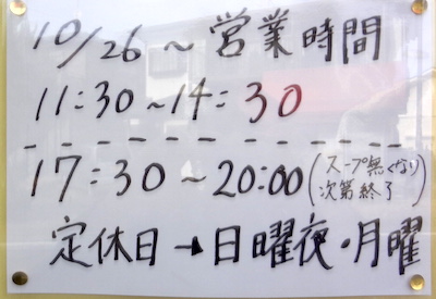 2021年10月に開店したお店。カウンターのみのこじんまりした店内は小綺麗である。メニューは、醤油らーめん750、塩らーめん750、柚子塩らーめん850、味玉らーめん(醤油・塩)850、特製らーめん(醤油・塩)1000、チャーシューらーめん(醤油・塩)1100、柚子塩味+100、味玉・メンマ・ネギ・鶏チャーシュー+100、豚チャーシュー(レア・煮豚)+150など。