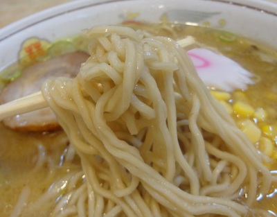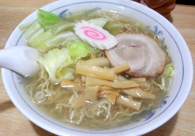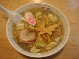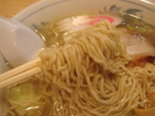 意外と早く出てきた。スープは透明度が高く透き通っており熱々である。シジミのダシが利いている。麺は相変わらずのゴワゴワ麺。このゴワゴワ度がここの麺の命なんです。具は、チャーシュー・ナルト・メンマ・キャベツ。ネギの代りにキャベツが入ってるんだ。(2009/5/31)