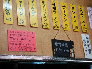 先週も来てみたが、駐車場が一杯であきらめた。今日は空いていたので初来店。中に入ると地元客が多い独特の雰囲気。場違いな処に入り込んだような気さえする。メニューは、サンマーメン630(大735)、タンメン630(大735)、ラーメン525(大630)、味噌ラーメン577(大682)、チャーシューメン682(大787)、ギョウザ357、チャーハン630(大735)など。消費税に忠実な価格の付け方である。タンメンを注文。そう、ここは、あの野毛の有吊店「三幸苑《の暖簾分けのお店なのだ。だからやっぱりタンメンなのである。