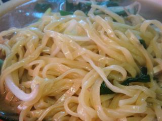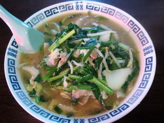 かなり待ってやっとタンメンが出てきた。野菜はいっぱい入っている。スープは、塩コショウに野菜のエキス、そして、そして、大量のニンニク! このニンニク風味が美味しい。でも油の膜のある熱々のスープなので、慌てると舌を火傷するかも知れない。酢を入れてみるとマイルドになる。麺は中太平打ち麺で、柔らかめだがしっかりしている。具は、豚肉と野菜(ニラ・白菜・もやし)炒めが大量である。シャキシャキした野菜の食感は好ましい。食べ終えるとお腹がいっぱいだ。実は、夕方まで全くお腹が空かなかった。(2007/11/12)