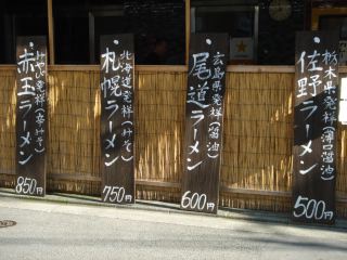 2008年4月4日に開店したお店。焼肉屋も経営しているという。メニューは佐野ラーメン(薄口醤油)500、尾道ラーメン(醤油)600、札幌ラーメン(味噌)750、赤玉ラーメン(辛みそ)850、カレーライスなど。券売機で食券を買うスタイルだが、なぜかカレーライスは現金らしい。店員は二人いる。佐野ラーメンの食券を買いカウンターに座る。