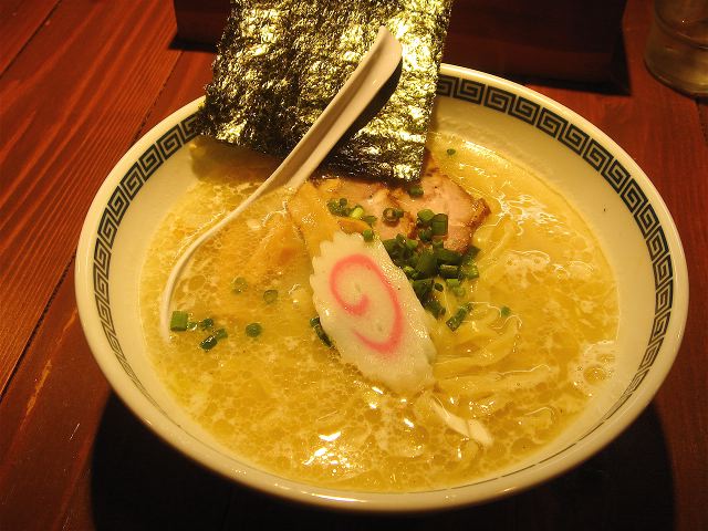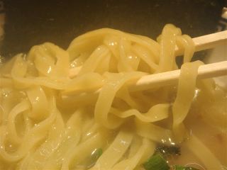 出てきたラーメンは、白湯と清湯との中間くらいの透明度のスープのもの。まろやかな魚介系中心のスープに、平打ちの麺(ここでは“いったんも麺”と呼んでいる)がよく会う。前回来たのがだいぶ前なので味の記憶は乏しいが、一般向けの味になったような気がする。(2009/12/12)