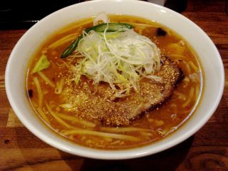 らーめんが出てきた。食べようとしてちょっと手が止まる。そうだ、白ゴマをいれるのだ。濃厚で油膜が厚くて、スープが熱い、寒い土地の寒い季節にピッタリのラーメン。麺は小林製麺で黄色く太くて縮れている。プリプリとした食感が心地よい。具はチャーシュー・メンマ・白髪ネギ・野菜炒めなど。食べ終わった後に、やっぱり言わなくてはいけないのかなぁ、、、、“あー、うめいや”って・・・(笑)(2007.3.16)