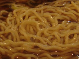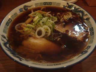 スープは色が真っ黒でどれだけ濃いのかと思ってしまうが、実は甘味のある醤油味でさっぱりしている。豚骨、野菜、昆布などだろうか。 麺は中縮れでまぁまぁ。具はチャーシュー・メンマ・ネギ。なかなか美味しい室蘭ラーメンだ。(2006.10.14)