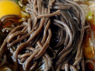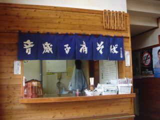 そばの街、音威子府駅にある、超有名なそば屋さん。1933年から営業しており店名は常盤軒という。見た目が真っ黒いそばで有名だ。メニューは、かけそば330、天ぷらそば430、月見そば380、天玉そば480など。天玉そばを注文。おやじさんに、ここのそばが食べたかったんですよ、と声をかけると照れ臭そうな笑顔を見せた。天玉そばのそばは本当に噂通りに真っ黒なそば。ワイルドで男性的な感じ。おみやげの乾麺も売っていた。(2006.10.17)