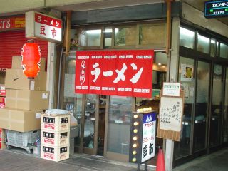 センタープラザの脇の道を暑い陽射しをよけながら歩いていたらこの店の前に来た。聞いたことのあるお店なので入ってみた。イスは7脚くらいあるがカウンターの上に物が置いてあり5人くらいしか座れないのだろう。わかめが練り込んだ麺が食べられるという五目ラーメンにも食指が動いたが、まずはラーメンを注文。メニューはラーメン500、定食(ラーメン+ミニカツ丼)800、五目ラーメン800など。店主は愛想が良く居心地はよい。出された水にも一工夫ある。
