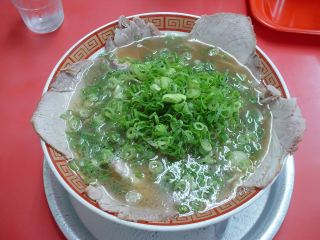 “もっこす”と聞いて熊本ラーメンを思い浮かべてしまいましたが、まったく裏切られました。豚骨白湯スープは淡い醤油色であり、京都の第一旭系に似ています。麺は細ストレート。具は、チャーシュー(5-6)・もやし・青ネギ(多)。中華そばに5-6枚のチャーシューですから、チャーシューメンにはチャーシューがどれくらい入っているのでしょうか?(2005.5.13)